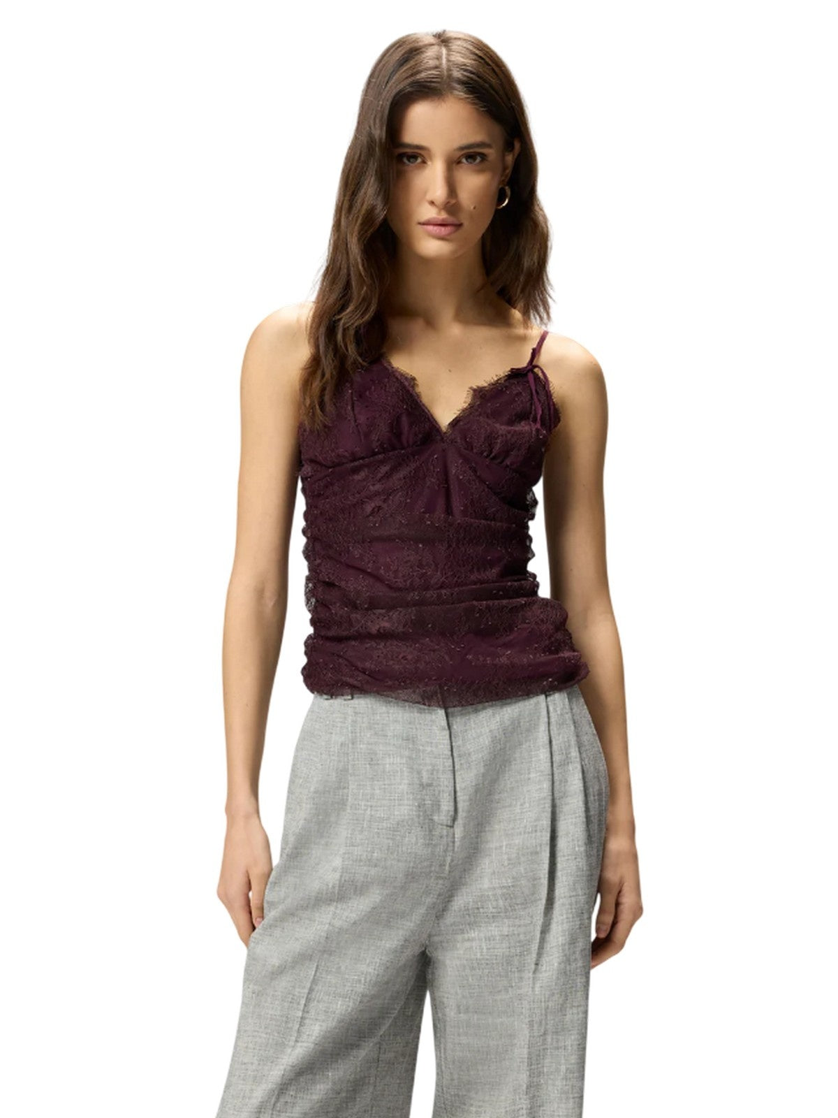 Canotte e top Donna Pinko - Fragola Top Pizzo Leggero - Bordeaux