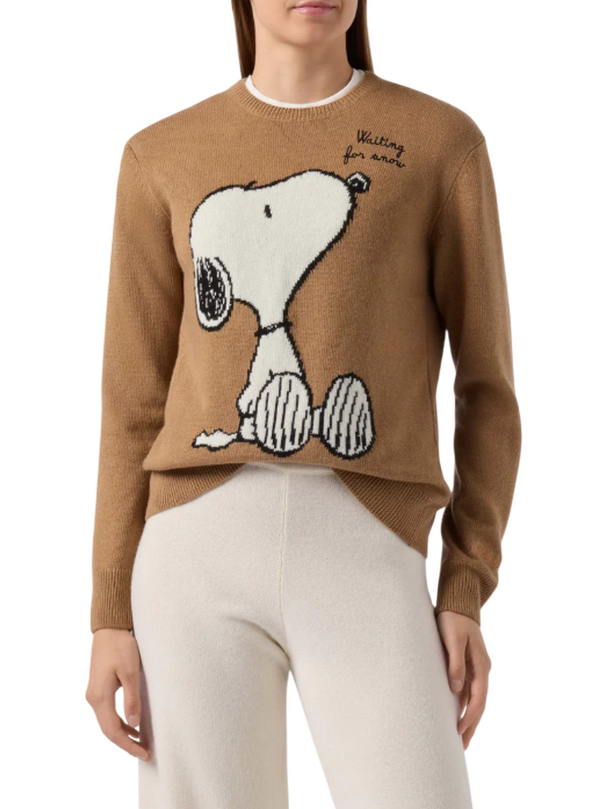 Maglioni Donna Mc2 Saint Barth - New Queen Snoopy Waiting Snow 19 Emb - Cammello