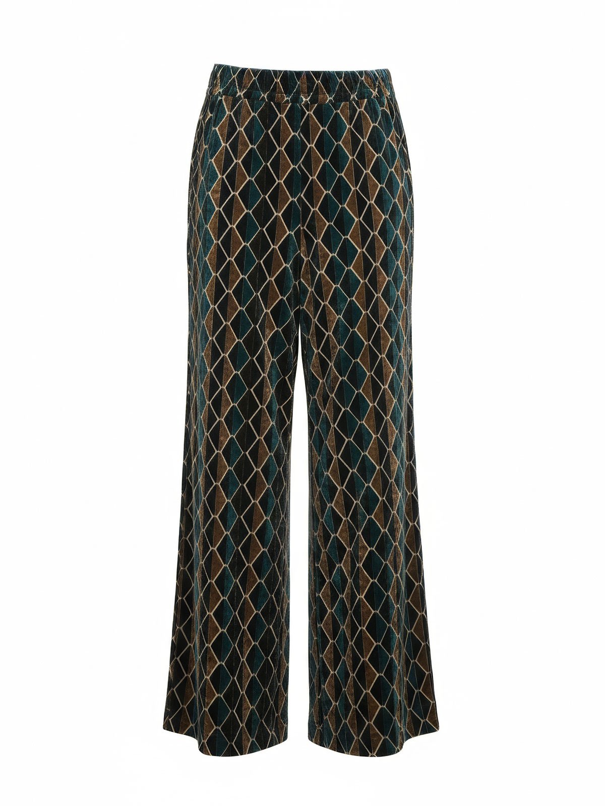 Pantaloni Donna 1One - Sofisticato Pantalone Palazzo Geometric Velvet - Multicolore